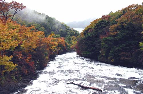 目をみはるほどの鮮やかな紅葉もいいけれど、くすんだ感じの秋色に染まった山々も、それなりに美しいですね。カラマツの黄葉が何ともいえない美しさでした。