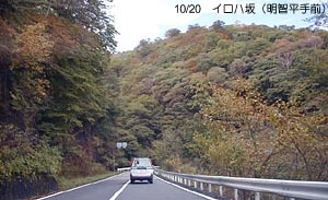 登りイロハ坂の上部、明智平手前あたりの紅葉です。
