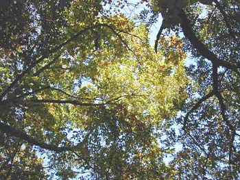 木々はまだまだ緑色です。秋の空の青とコナラの緑が鮮やかでした。