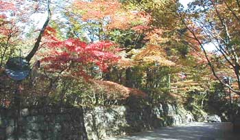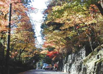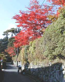 11月11日、その山内の紅葉の様子を撮影してきました。参道にはホオノキの大きな落ち葉や気の早いカエデの落ち葉などが敷き詰められていますが、紅葉はちょうど良い時期でオオモミジは青い空を背景に真っ赤に色づいています。
