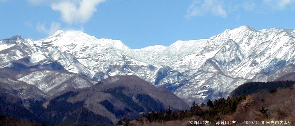 翌朝(今日です)は快晴。昨日の雪がウソのように晴れ渡り、澄み切った空気を通して、女峰山が真っ白に光輝いています。