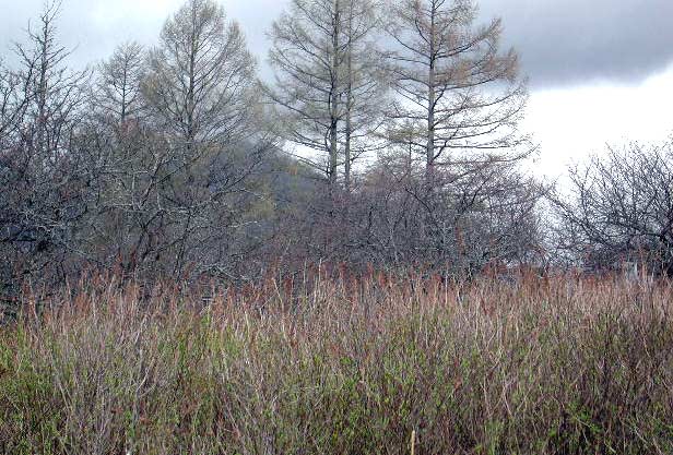 あたりは緑にはまだまだという感じ。カラマツとホザキシモツケの新芽が出始めというところです。