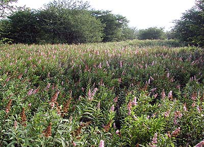 北西部では草原が復活し、ノアザミをはじめ、ツリガネニンジン、ワレモコウ、イブキトラノオなどの花々がお花畑のように咲き乱れ、ノアザミにはたくさんのミドリヒョウモンが蜜を吸いにきていました。幼虫がクガイソウを食べるコヒョウモンモドキという草原性の蝶が絶滅したのはとても残念ですが、同じ草原性の蝶でヒョウモンチョウが飛んでいるのを久しぶりに見ることができました。