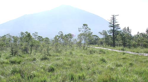 今日は、赤沼から湯川沿いに北上し、泉門池から小田代原北側をとおり、西ノ湖にいき、千手ヶ浜まで歩く予定。帰りは低公害バスで赤沼まで戻る行程です。デイパックにはお弁当のほか、前日から凍らせておいた缶ビール、そして最も重い荷物が植物図鑑と蝶とトンボのハンディ図鑑です。ゆっくりと動植物を観察しながら歩くつもりです。