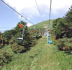 関東平野を臨むことができる霧降高原では、晩夏のオヤマリンドウの花もほぼ終わり、初秋の花々が咲いていました。リフトに乗りながら見える草原には、小さなススキ(名前不明)とともに白や黄色や薄紫色の花が秋の訪れを感じさせてくれます。
