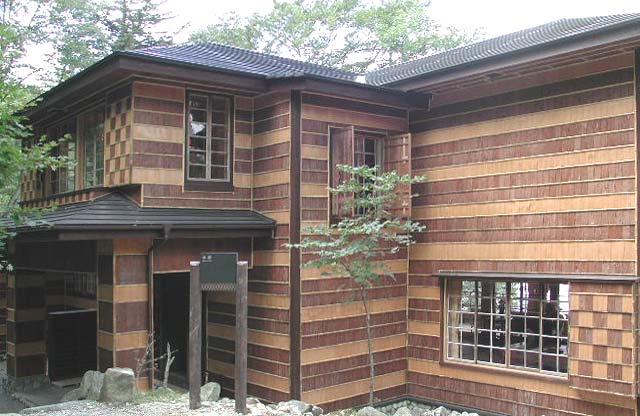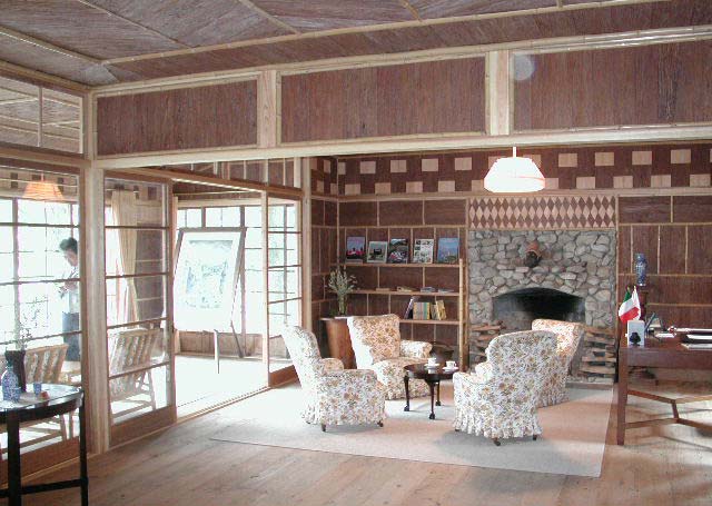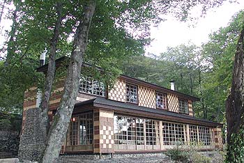 イタリア大使館別荘はアメリカの建築家、アントニー・レーモンドの設計により、昭和3年に建築されました。内・外装はスギの皮で装飾され、日本のスギと西洋建築が不思議に調和した素晴らしい建物です。