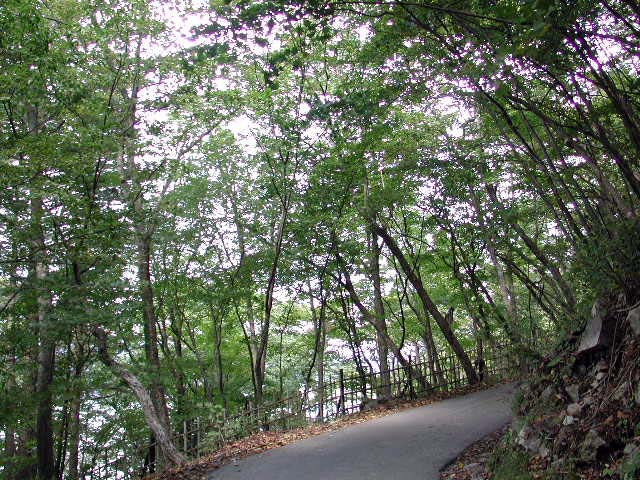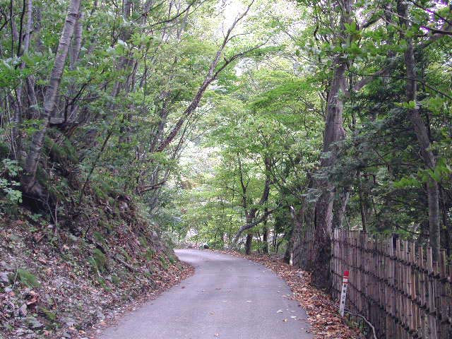 阿世潟への車道入口にはゲートが設けられ、一般車の乗り入れを制限しています。イギリス大使館を右下に見ながら森を抜け「砥沢」という川を渡り、すぐのところにあります。