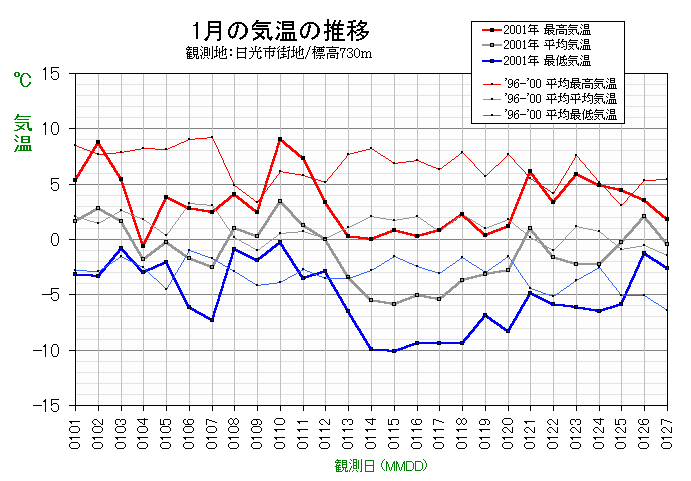 今年は全国的に寒い冬となりました。 日光でも先週は最低気温が−10℃近くまで下がる朝が続き、あちこちで水道管凍結なんかの話を聞きました。こけこっこ家でも風呂のボイラーが凍結し、数日風呂がない日が続き、2Fのトイレの水道管はあれ以来、ずーっと凍ったままで使用不能状態です。 今年の冬とここ数年の気温を比較するためその変化をグラフにしてみました。観測はこけこっこ家の庭です。
