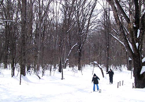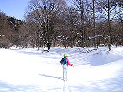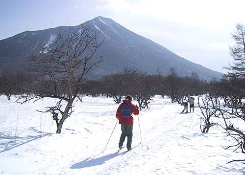 戦場ヶ原一帯は積雪が約1mあり、ここ数年にない大雪のなかクロスカントリーが楽しめます。日曜日でたくさんの人たちが雪を楽しんでいました。スキーのレンタルは三本松の売店か光徳のアストリアホテルで1日2千円が相場。スノーシューのレンタルもあり、それは1千円。