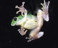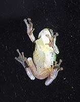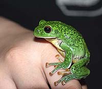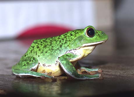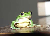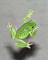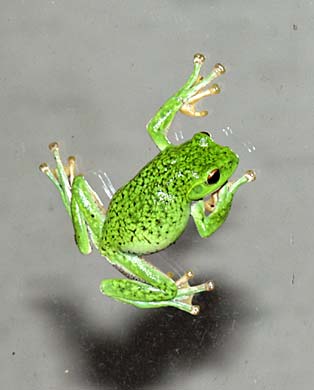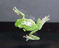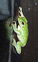 強い雨が降った22日の夜、こけこっこ家に突然、モリアオガエルが訪ねてきました。窓ガラスに見事な吸盤を使って張り付いています。