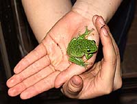 きっとそのときのカエルの子孫が成長した姿を見せにやってきたに違いないと、大きくなったかっちゃんと話しながら、カエルが苦手なまゆみちゃんとともにじっくりと観察しました。