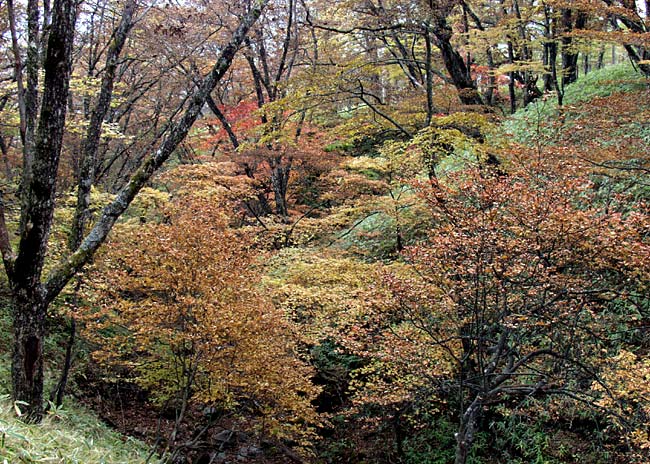 奥日光の戦場ヶ原周辺と同じ標高1300m〜1400mほどの落葉樹の森を歩きましたが、昨年ほどではありませんでしたが、静かな晩秋の紅葉を楽しむことができました。