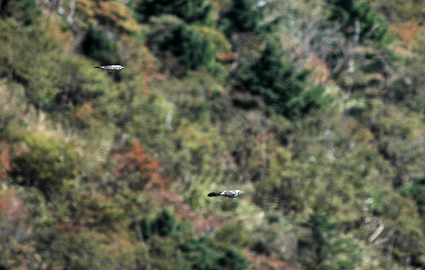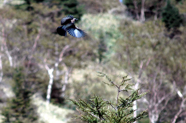 これらの鳥はすべて真北から真南方向に飛びます。カケスなどは途中にあるダケカンバなどに止まり休みますがすぐに南に向かって飛び立ちます。