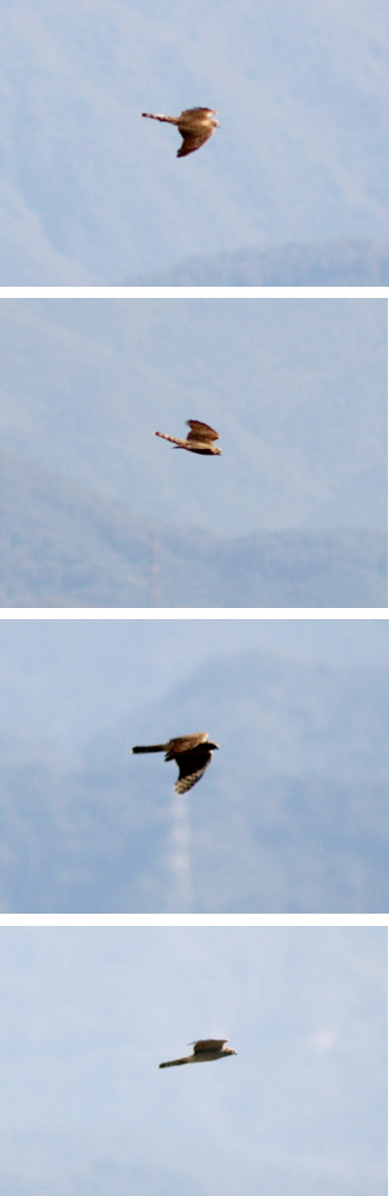 また、この日は左の写真のように、オオタカも観察できました。小型ですがノスリとは違う鋭い飛び方に見えます。