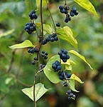 最初に目についたのが初めてみる蔓性の植物。ネットや図鑑で調べてみたら、アオツヅラフジ(写真右)でした。根や茎、さらにこの紺色の実も薬になるそうで、関節痛などに薬効があるそうです。