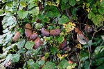 そして、ミツバアケビ。半数くらいの実が既に割れていましたが、割れずに残っている薄紫色の大きな実はいつ見てもきれいです。種がいっぱい入っている甘い果肉の味がなつかしいです。