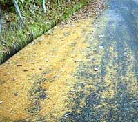 でも、左の写真のように、道路の端にはカラマツのさらさらした黄葉がじゅうたんを敷きつめたように広がり、冬が近いことを感じさせます。