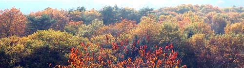 下の写真のように屋根からはコナラの黄金色が一面に見え、華やかな秋の最後を感じさせます。 同じ写真のフルサイズ版(130KB)もよろしかったらどうぞ。下の写真からもリンクしています。