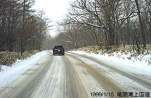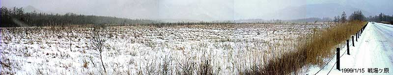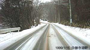 奥日光は大雪かと思っていたら、意外に雪が少なくて、戦場ヶ原周辺(下の写真)で約20p、光徳・湯元周辺で30pというところでしょうか。でも雪は降っています。もちろん、道路は真っ白の圧雪路です。