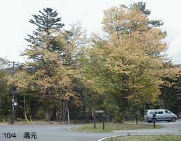湯元の市街地では写真のようにカツラが黄葉を始めています(国民休暇村日光の前)。他にはツタウルシなどの紅葉がきれいでした。