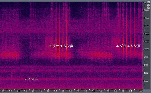 カンタンの声 (mp3 128Kbps /530KB)カンタンは小さな秋の鳴く虫。すべてダミーヘッドによる録音です。