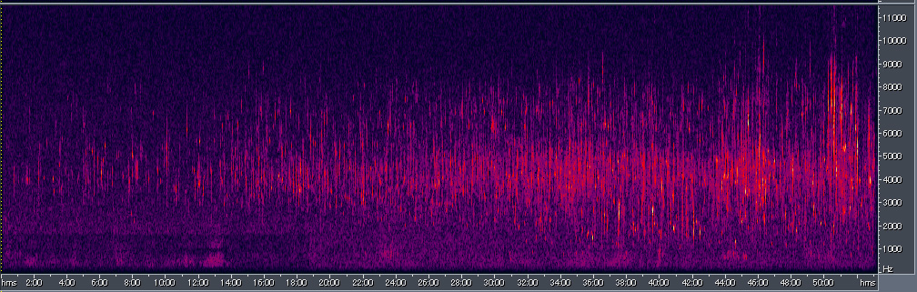 |  | 針葉樹林の日没。ルリビタキがいたるところで鳴き、日没にかけてアカハラが鳴き始めます。そして暗闇の到来とともに鳴き声は静かに消えていきます。 主な鳴き声:ルリビタキ・ウグイス・アカハラ・キクイタダキ