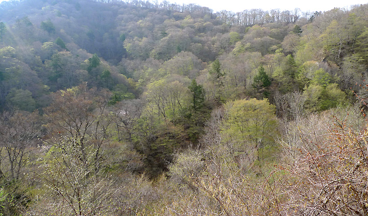 |  | 標高の高いこの地では夏鳥の囀りはまだ最盛期を迎えていません。写真のように新芽が出たばかりで鳥の数も種類も少ないようです。コガラの高い声がとてもきれいに響きます。 主な鳴き声: マミジロ・コルリ・ミソサザイ・コガラ・エゾムシクイ